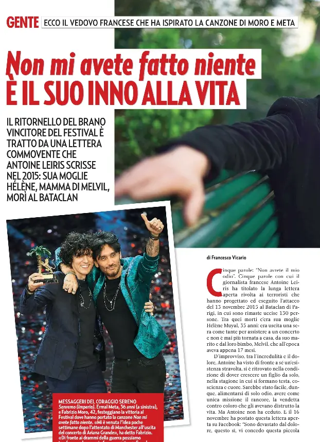 Non mi avete fatto niente (Ermal Meta e Fabrizio Moro) Non mi avete fatto niente (Ermal Meta e Fabrizio Moro) - Significato canzone Questo brano si ispira alla lettera scritta da Antoine Leiris, che ha perso la moglie nell'attacco terroristico di Parigi del 13 novembre 2015.