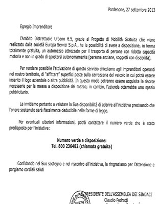 Fac simile lettera richiesta al sindaco